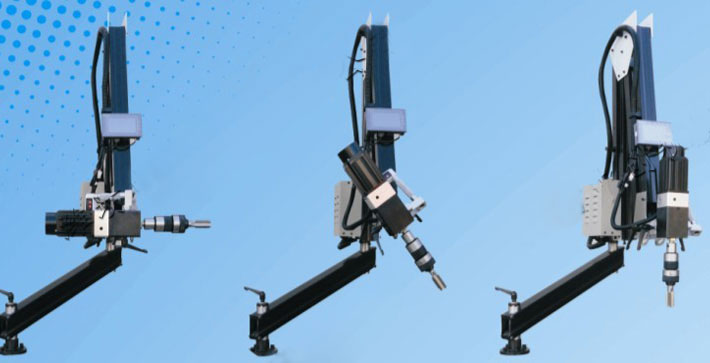 1、微電腦控制,扭矩大小可調,盲孔不斷絲錐:可根據攻絲的大小自行調節扭矩,加上扭力夾頭過載保護,雙重保護,不斷絲錐;主軸在半徑1200/2000MM內任意移動。